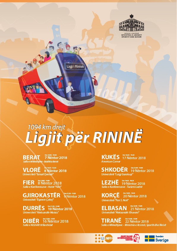 Një autobus me sloganin “1094 km drejt ligjit për rininë” është stacionuar në 12 qarqe të vendit, ku janë mirëpritur idetë e të rinjve për të udhëtuar të sigurt drejt së ardhmes evropiane që duam.